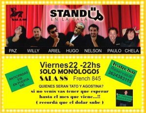 Esta vez el stand up será dentro de la sala que cuenta con climatización pero el bar –atendido por los propios actores- seguirá con el mismo método: empandas, cerveza (la más fría de la ciudad), vinos y gaseosas. La entrada cuesta 30 pesos y se deben reservar ya que solo habrá 100 localidades.
