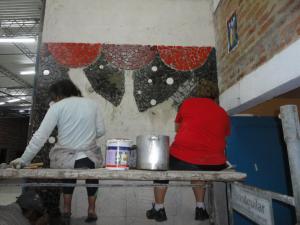 El mural, denominado El Elenco, está ubicado en la pared del hall, en el ingreso a la sala nueva recientemente inaugurada (donde se darán las clases de teatro) y mide 3.20 por 3.10 metros. Está construido con mosaicos y fue realizado con la ayuda de los actores de la sala.