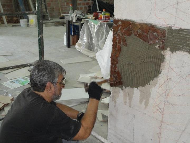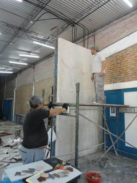 El mural, denominado El Elenco, está ubicado en la pared del hall, en el ingreso a la sala nueva recientemente inaugurada (donde se darán las clases de teatro) y mide 3.20 por 3.10 metros. Está construido con mosaicos y fue realizado con la ayuda de los actores de la sala.
