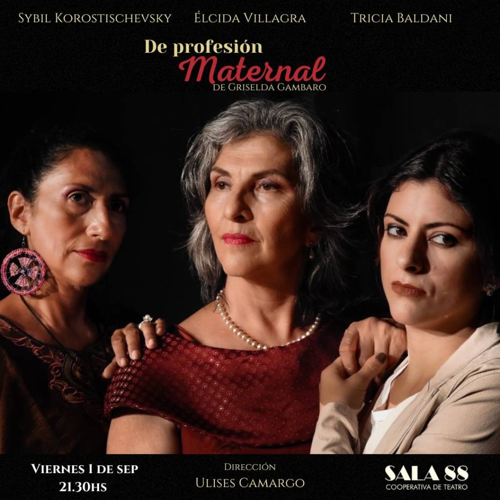 De profesión maternal será el viernes a las 21:30 es una comedia dramática, en la que una mujer busca y encuentra a su hija 30 años después de haberla abandonado. El encuentro estará lleno de cuestionamientos, nervios y revanchas. La obra es interpretada por Élcida Villagra, Sybil Korostischevsky y Tricia Baldani bajo la dirección de Ulises Camargo, una producción de La Usina de Sáenz Peña.