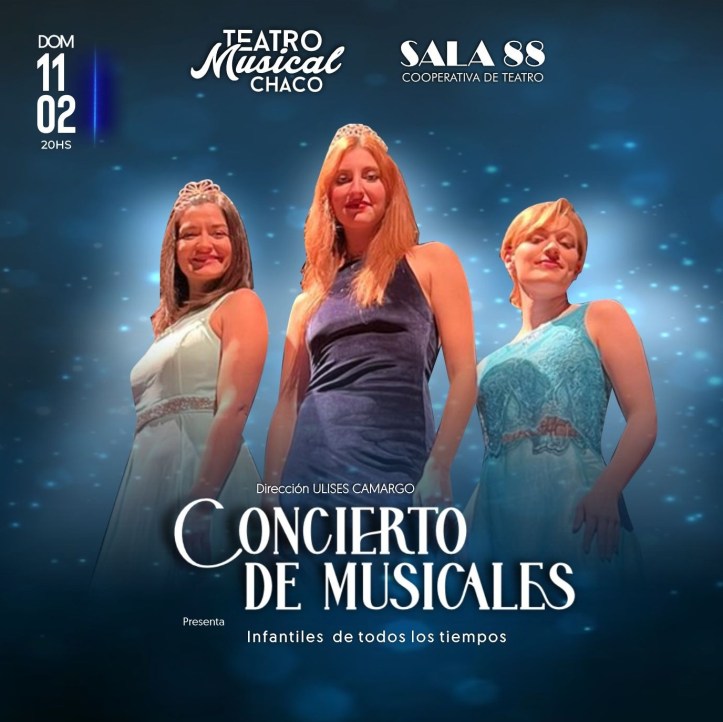 El domingo vuelve el show de Conciertos de Musicales, de Teatro Musical Chaco donde excelentes cantantes interpretarán los grandes clásicos del musical infantil mundial. Será a las 20 en las instalaciones de la cooperativa. Las entradas se pueden comprar anticipadas al 3624383115.
