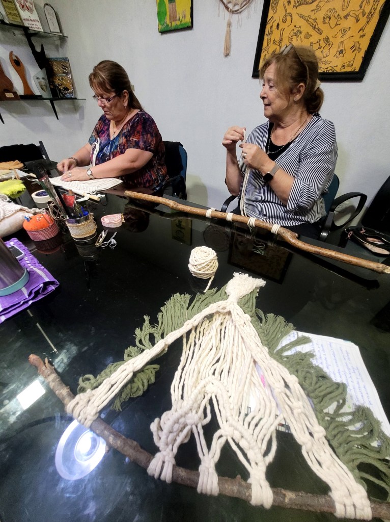 También hay clases de macramé y de bordado chino, los lunes a las 17:30 con la profe Ana Serantes; y de bordado mexicano (en otra aula) de 17:00 a 19:30 a cargo de Viviana Bangher. Y de crochet, los miércoles de 18:00 a 20:00 con la profe Gabriela Najmias