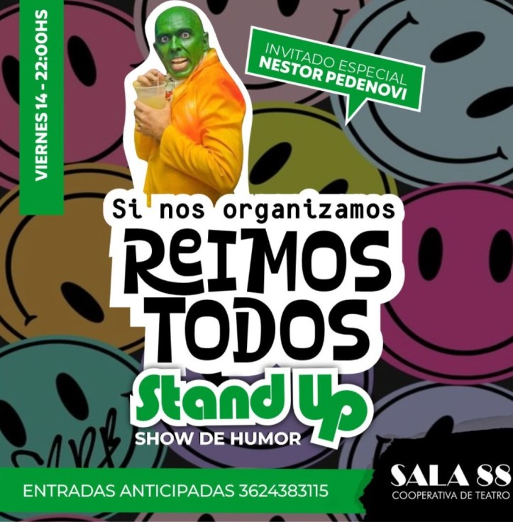 🎭El elenco de Stand Up, de la cooperativa de Sala 88 está integrado por Nelson Fernández , Tato Monzón, Paulo Segobia, Andrea Benítez y Eli Bustamante. Con la actuación especial del invitado Nestor Pedenovi